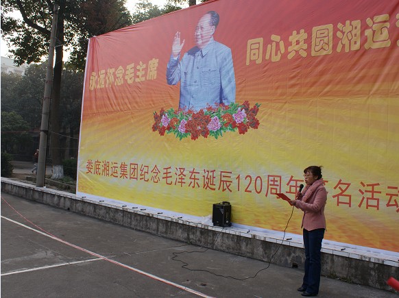 今年是毛澤東主席誕辰120周年,是公司深入學習貫徹黨的十八屆三中全會精神,踏上新征程的開局之年。12月24日上午9時許,公司在老機關院落籃球坪隆重舉行“永遠懷念毛主席、同心共圓湘運夢”紀念毛澤東誕辰120周年離退休老同志大型簽名紀念活動,緬懷先烈們的豐功偉績。公司婁底片離退休、 內退、協(xié)保同志近四百人參加了此次活動。公司董事長兼總經(jīng)理彭瑞華、監(jiān)事會主席吳一江等公司領導親臨活動現(xiàn)場。