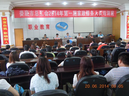 2014年6月20日上午9點(diǎn),由婁底湘運(yùn)職業(yè)技術(shù)培訓(xùn)學(xué)校承辦,婁底市總工會主辦的2014年第一期家政服務(wù)員培訓(xùn)班在湘運(yùn)職業(yè)技術(shù)培訓(xùn)學(xué)校五樓教室隆重舉行開班儀式,市總工會黨組成員、工會副主席譚紅衛(wèi),婁底湘運(yùn)公司董事、副總經(jīng)理兼工會主席謝克明等有關(guān)領(lǐng)導(dǎo)出席開班儀式。