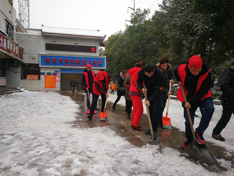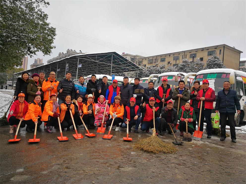 一場大雪像是為了迎接新年的到來,在2018年年末的午夜悄然而至,先是雪沙狂灑,爾后雪花不知疲倦的翩翩起舞,全城銀裝素裹,地上積雪高達80CM,潔白的雪花給人們帶來了喜悅的心情及瑞雪兆豐年的好兆頭,但也給公路出行帶來了不便。因積雪太厚,車站的客運班線車輛只能全線停運,但還是有些想出行的市民來車站詢問車輛運行情況和購買預售票。由于站場積雪、結冰現(xiàn)象嚴重,為防止旅客走路滑跌,同時及時做好班線復班準備,婁客司經(jīng)理楊付生指示馬上啟動“破冰鏟雪”活動方案,由車站領導組織車站學雷鋒志愿者開展“鏟雪刨冰”活動。