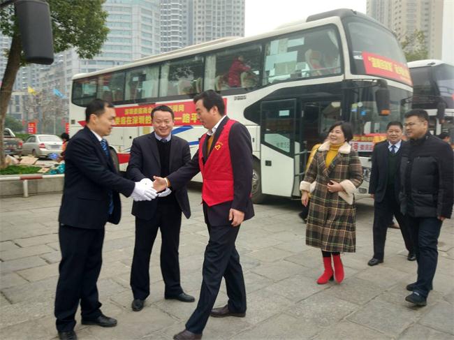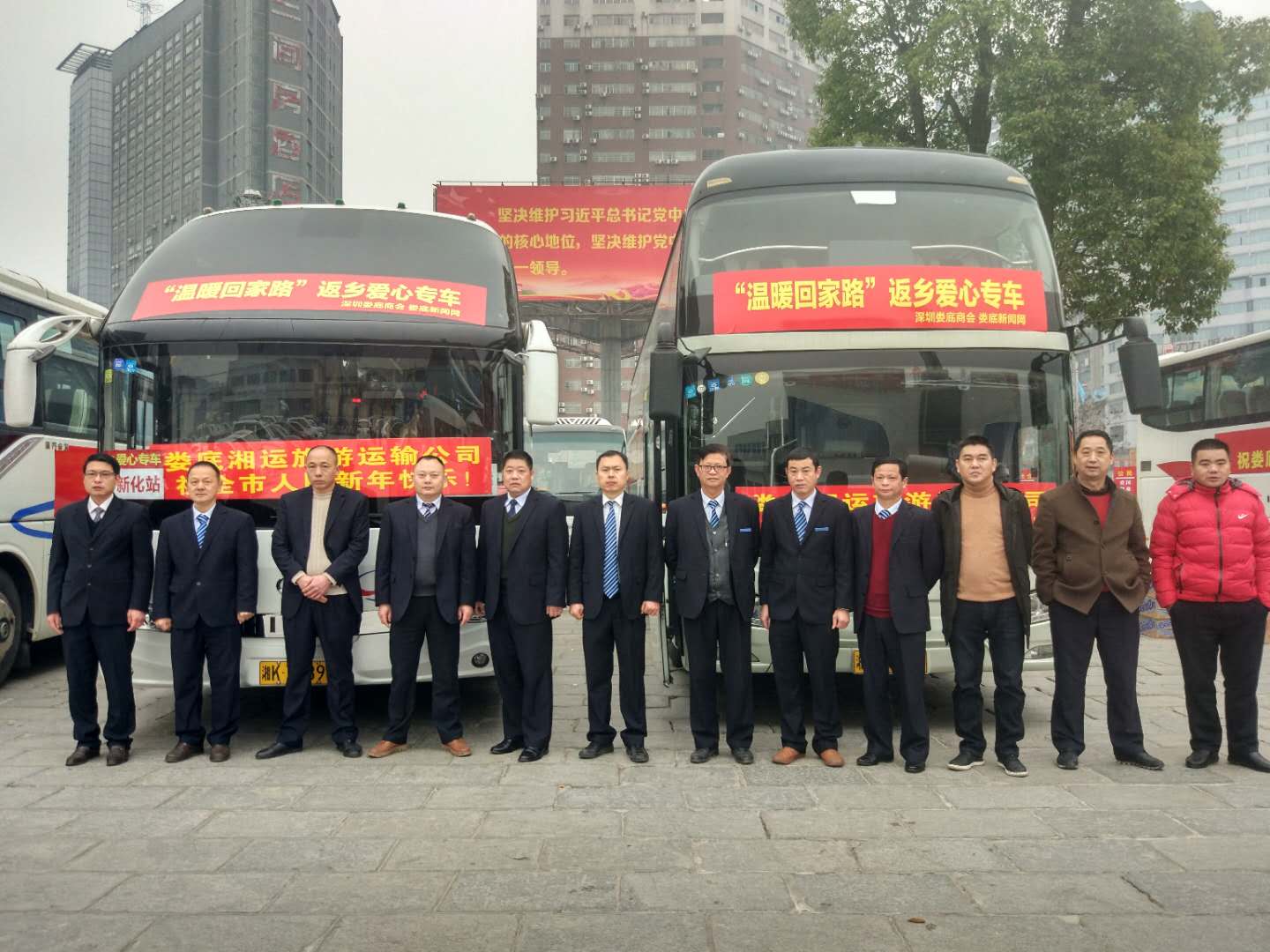 “駕駛員師傅們,你們辛苦了!感謝你們積極參加這次“溫暖回家路”活動,拜托大家一定要確保安全,做好優(yōu)質(zhì)服務(wù),將返鄉(xiāng)的家鄉(xiāng)親人們平平安安接回家過年。“1 月26日上午,在婁底火車站舉行的2019年度“溫暖回家路”大型公益活動啟動儀式現(xiàn)場,市委常委、宣傳部部長吳建平一行來到“溫暖回家路”溫暖回家專車前,一一握著擔(dān)任此次運(yùn)輸任務(wù)的婁底湘運(yùn)旅游公司駕駛員同志的手,親切叮囑道。“請領(lǐng)導(dǎo)放心,我們已做好充分的準(zhǔn)備,保證圓滿完成任務(wù),確保返鄉(xiāng)的家鄉(xiāng)親人們平安到家”。一直在現(xiàn)場指揮的旅游公司負(fù)責(zé)人李建軍代表公司向吳部長進(jìn)行了表態(tài),并匯報(bào)了"溫暖回家專車″運(yùn)力準(zhǔn)備、司機(jī)配備等情況。