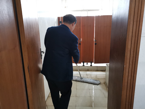 3月13號(hào),是輪值衛(wèi)生的第一個(gè)星期,總部五樓衛(wèi)生由審計(jì)部負(fù)責(zé),公司監(jiān)事、紀(jì)委書(shū)記黃文和審計(jì)部的同事把五樓男女廁所、樓梯、走廊過(guò)道衛(wèi)生里里外外打掃得干干凈凈。負(fù)責(zé)三樓衛(wèi)生的黨群部部長(zhǎng)鐘愛(ài)華和四樓衛(wèi)生的保衛(wèi)部部長(zhǎng)姚邵洪也是帶著部門(mén)同事一起打掃衛(wèi)生。